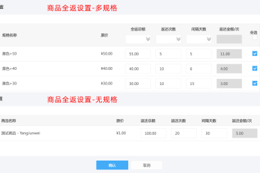 数据库字典之ewei_shop_fullback_goods订单全返商品表,具体设置参考后台“营销-全返管理”。